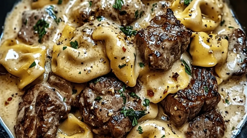 Combine the Ingredients: Return seared steak and tortellini to the skillet and toss to combine for about 2 minutes.