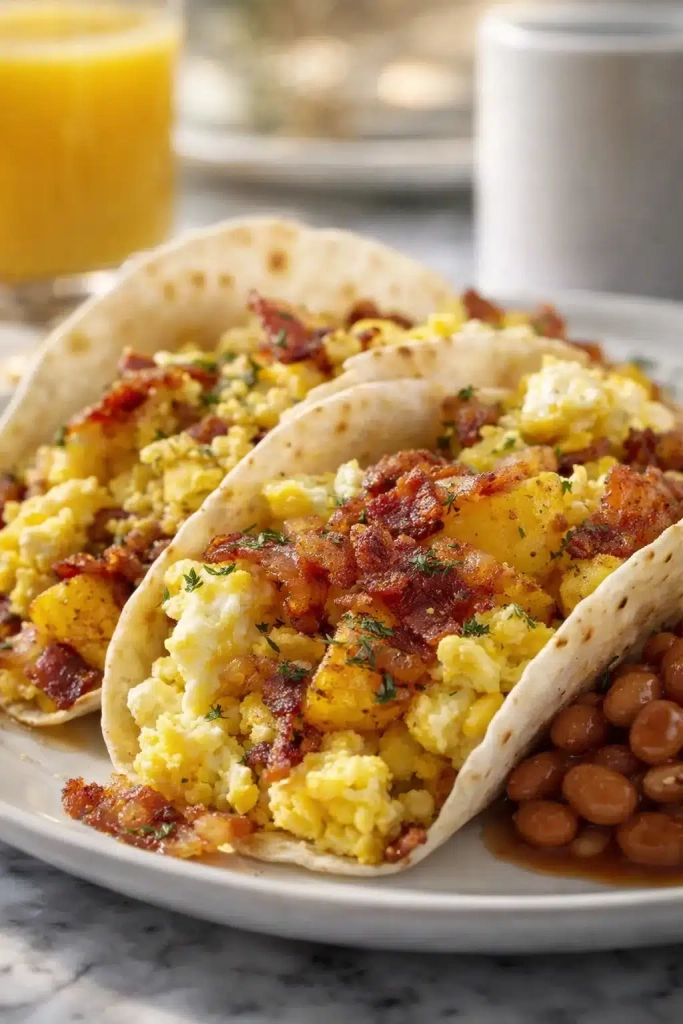 There’s something about weekends that call for slow mornings and cozy kitchen smells. These Tasty Baked Breakfast Tacos are exactly that kind of comfort golden tortillas filled with soft eggs, crispy bacon, and cheesy potatoes, baked to perfection. They’re hearty, flavorful, and easy enough for busy mornings yet special enough for brunch with friends. You’ll love these tacos because they’re both easy and delicious. They bring together crispy bacon, tender potatoes, and melty cheese in every bite.