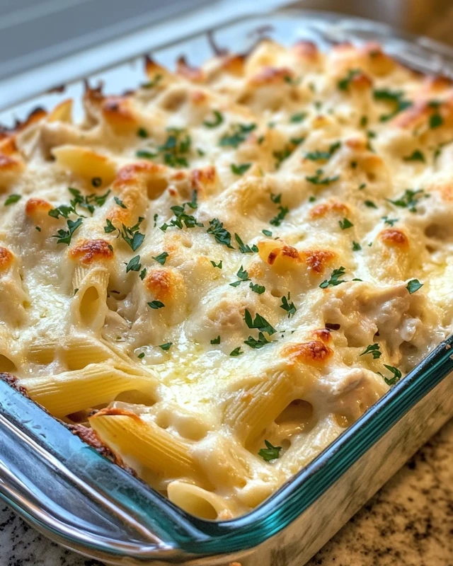 In conclusion, the Chicken Alfredo Pasta Bake is a delightful dish that brings comfort and satisfaction to any meal. With its creamy Alfredo sauce, tender chicken, and perfectly cooked pasta, it’s no wonder this recipe has become a favorite for many families. Whether you’re preparing it for a special occasion or a cozy weeknight dinner, this dish is sure to impress. Not only is it easy to make, but it also offers versatility. You can customize it to suit various dietary needs, whether you choose a vegetarian option or a gluten-free adaptation. The simple ingredients come together to create a comforting meal that everyone will love.