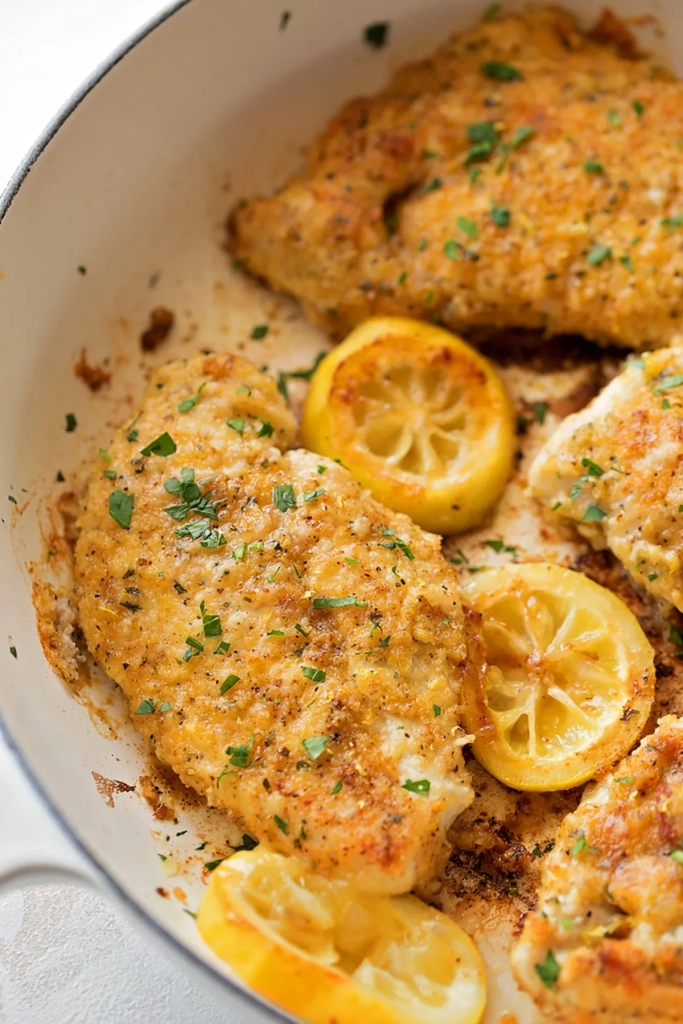 Step into a world of zesty delight with our Lemon Pepper Chicken! In just 30 minutes, you can enjoy a dish that’s a delightful mix of sharp lemon tang and a spicy pepper kick, sure to become a family favorite in no time! Lemon pepper chicken served in a dish garnished with parsley. Step into a world of zesty delight with our Lemon Pepper Chicken!