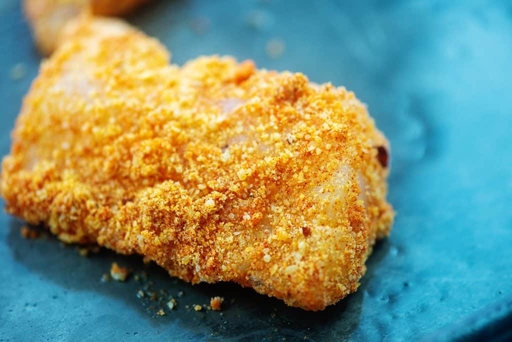 We use the powdery Parmesan cheese in the green can for a finer breading, but you could also use shredded Parmesan for a different texture.