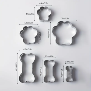 Convenient 6 piece set for making dog and cat treat for your furry friends. Multiple sizes of paws and bones for making biscuits, treats, cookies and more!