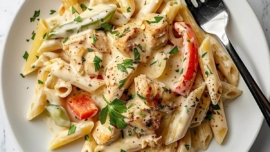 Prep time: 4 minutes Cook time: 25 minutes Total time: 30 minutes Servings: 4 Cuisine: Dinners, European Recipe Info This creamy bacon chicken...