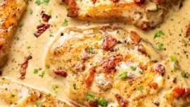 Prep time: 5 minutes Cook time: 25 minutes Total time: 30 minutes Servings: 4 Cuisine: European Recipe Info This creamy bacon chicken recipe is...