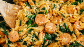 Prep time: 5 minutes Cook time: 20 minutes Total time: 25 minutes Servings: 4 Cuisine: Italian Recipe Info This Creamy Chicken Sausage Orzo...